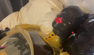 Rubber Missy is enclosed in my black rubber skin, from head to toe. As well as my transparent rubber bolero on top. I love the look of several layers of rubber. laying on my bed covered in latex, blankets and latex zentai pillows. The smell makes me so horny. Covering my self with my fetish latex sheets rubbing all over me, touching my latex masked face. Gagging myself, pumping it up. I can’t resist anymore, satisfying my rubber pussy with my vibrator…