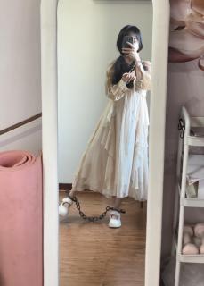 妹子在家戴好手铐脚镣,在屋子里面走来走去,又去照照镜子看看新裙子好不好看,在校女生难得假期,在家里全程戴着镣铐,切切面包,收拾下厨房,然后出去春游。