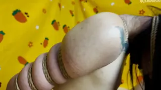 已购99+次 片名:【道士下山】海老缚折磨放置+五花+紧缚虐胸+驷马+马具口球+震动棒+把模特电击到哭 电到屁股在跳舞