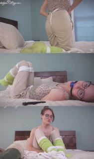 忙碌了一天之后,这种束缚带来的极致快感真是太棒了!我先是仰面躺着,然后侧身,接着是趴着,最后撅起屁股,如果你觉得我扭来扭去的样子很性感,那就想象一下我的感受吧!当然,我穿着袜子的脚底板也绝对在画面中心,你近距离观看我私密的放松时光,让我自我放松的每一秒都更加性感!这正是我需要的,这一切都要感谢这部刺激的影片!It’s so good to be home! It’s been a long day and I’m eager to strip out of these pesky work clothes to unwind. Shrugging off my stuffy lab coat, I move to the bed and slide off my leather Mary Jane shoes with a sigh of relief.