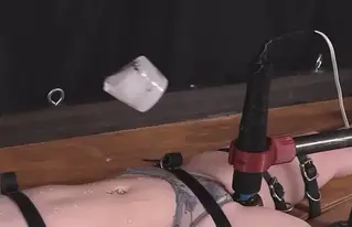 Just outside her vision, a vibrator kicked on and off randomly, keeping her mind numbingly frustrated. I was already one step ahead of her with a block of ice. Suspended from the ceiling and left to swing above her, the ice-cold water dripped over her body, helping to extinguish any embers of a potential orgasm.