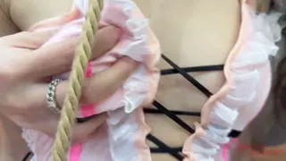 下属拿出了一套非常羞耻的衣服要求女领导换上,并蒙住了女领导的眼睛,想要以此来剥夺女领导的感官感受,更加刺激到女领导的身体。换好衣服的女领导显得那么的诱人,下属不断的用手揉捏女领导的胸部,并用zd棒挑逗其下t,下属感到还不够羞耻 ,便用绳子将女领导像狗一样栓住,要求女领导像母狗一样爬行,并在爬行过程中不断地用言语去羞辱她,用zd棒刺激下t,下属拿出假Y,要求女领导伸出舌头去舔舐吮吸,从女领导口中拿出时还连带着其晶莹的口水。下属拿出鼻勾给女领导戴上,女领导的鼻子被拉扯的像猪鼻子一样,只能被迫抬头缓解痛苦。女领导在被调教的过程中慢慢放开自己,从被强迫的不愿再到享受,女领导抬起一条腿像狗撒尿一样的姿势,被下属玩弄。下属要求女领导一字马爬行去找贴在地上的zd棒,并用多个zd棒去挑逗女领导,不断高潮的女领导已经十分虚弱,下属便将女领导吊起来,女领导蹲不下也站不起来,只能以一个极度羞耻的姿势被吊在那里,身下还用股绳固定了一个zd棒,下属从带来的箱子里拿出k9固定架,组装好后下属拿走了蒙眼布,看到眼前的奇怪装置,女领导惶恐不安,不知道下属还要用什么方式来折磨自己...