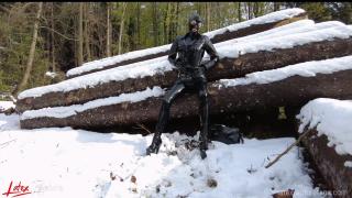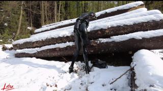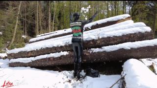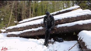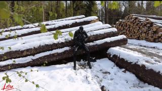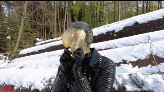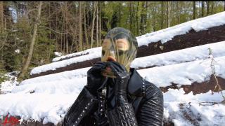 Last winter I decided to go for a walk in the snowy woods. I love the snow! Of course I was rubberised from head to toe with my pussy pump in my pocket. This was heaven to me because I always have a gas mask and rebreather with me too. I didn't want to miss the opportunity and immediately looked for a quiet corner.