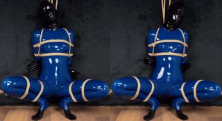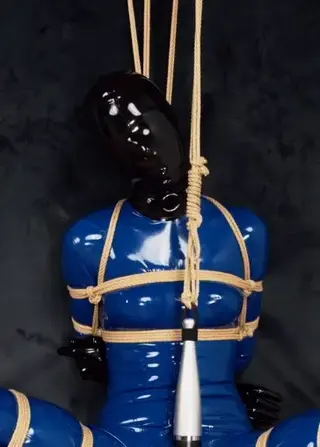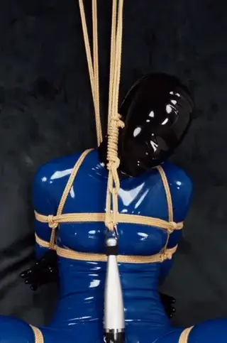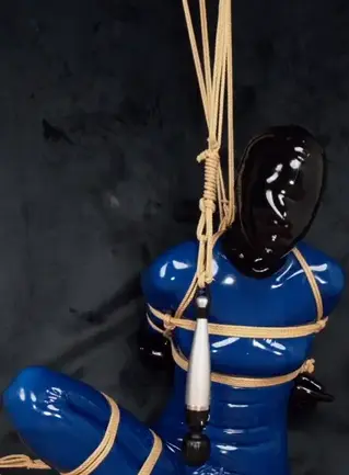 Highly sensitive and prone to orgasm, European and American promiscuous women wear tight black headbands mask with no eyes and dark blue full coverage latex jackets. Their hands are wrapped in black latex gloves, and their feet are fitted with tight blue latex socks with toes. The slut's arms were tied with hemp rope and tied to her chest, while her legs were folded and tied in a squatting position. The cave and clitoris with nails were constantly kigurumi stimulated by a vibrator. In the repeated play of the continuously activated masturbation device, the doll wrapped in tight zentai fitting clothes and the fetish slut crazily forced herself to climax in constant screams and screams, until finally exhausted and unable to sit down completely due to being bound by a rope .....Latex doll tied up with vibrator.This was quite the predicament. I loved this idea and I was totally up for horny times! I thought I was going to be in total control of the vibrator but it turned out to be not as easy as I thought. I was about to cum, but then it shifted away from the sweet spot! It was a bit frustrating at first but it actually made it more fun. After a while my legs were getting tired but I couldn't change positions because I knew the vibrator wouldn't be in a good place anymore. So I tried not to think about that and I succeeded. It was so intense when I came because of the restriction with the ropes, so yummy! Overall I had an excellent time and I can't wait to try it again!