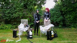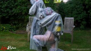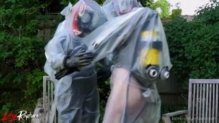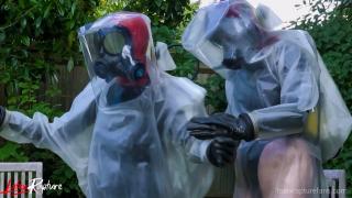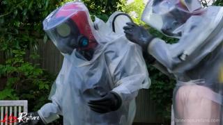 In the seclusion of the backyard, I stood for the first time in front of the protective suit whose contours promised a journey into the forbidden. I was already rubberised and the thought of another completely airtight layer of isolation made my heart race. As I felt the cool fabric, I felt a rush of anticipation flow through me, igniting my pussy and making me instantly wet. I slipped into the suit and the feeling of the two layers sliding against each other made me moan. The airtight breathing mask, the thick latex gloves and the rubber boots isolated me completely from the outside world.