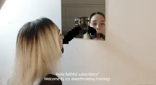 hi i can make 85 deepthroats in less 2 minutes with my hands tied in my back. For every blowjobs i have to swallow the full dildo and touch the sensor with my nose.. a blowjob challenge !