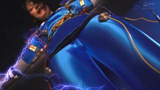 内容は磔シーンが多めの討伐モノ。変身コスチュームでの磔拷問シーンから始まり、脱出に失敗して変身が解けると、その後は変身前のミニスカコスでも磔討伐責め。そして再び変身し、またしても磔にされて強化スーツが損傷し、最後は手足を拘束されたままお尻が赤くなるまで痛めつけられて絶体絶命のピンチ。そんな感じで、渚みつきさん扮するブルーフェンリルが磔状態で甚振られる姿をたっぷり楽しめるヒロイン討伐!!