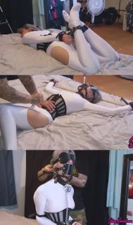 As the video progresses, the Dom's touch becomes more deliberate, teasing and tickling Trip Six's bound form, occasionally probing her sensitive, spandex-clad areas with precision. These subtle, intimate moments serve as a tantalizing counterpoint to the overt displays of power and control, heightening the complexity of the scene.