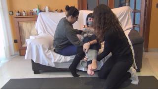 来自西班牙Ties的两位最著名、最危险的女窃贼联手进行她们的下一次抢劫!这次她们的目标是我们的新模特Sejmet。可怜的女孩正在午睡,两个淘气的女孩偷偷溜进她家,趁她熟睡时对她进行了袭击。Sibyl用手捂住她的嘴,Liricaa则绑住了她的双手。她们用Sejmet的袜子堵住她的嘴,把袜子塞进她的嘴里,然后用胶带紧紧地缠住。她们用了大量的胶带把她绑起来!这是她们最喜欢的部分,绑住受害者,玩弄她们,她们很享受!但现在是时候继续“办事”了,对Liricaa来说,这意味着背叛她的同伙,也把她绑起来,这样她就能独吞所有的钱。Sibyl简直不敢相信!她也被用袜子和胶带堵住了嘴,并被紧紧地绑了起来。Liricaa真是太淘气了!现在她完全控制了这两个女孩,她们毫无反抗之力。她很享受这种感觉!她甚至还和她们合影!女孩们被留在那里,莉莉卡则去找钱。可怜的女孩们,她们都被绑了起来,嘴也被堵住了!The most famous and dangerous burglars from Spanish Ties are teaming up for their next robbery! This time her victim is our new model Sejmet. Poor girl is napping when the two naughty girls sneak into her house and assault her while she's napping. Sibyl handgags her while Liricaa ties her hands. They use Sejmet socks to gag her, introducing the socks into her mouth and then gagging her tighly with tape. They use a lot of tape to tie her up! This is her favourite part of the job, tying up the victims and playing with them, they love it! But now is time to get back to business, and for Liricaa that means betray her partner and tie her up too, so she can get all the money. Sibyl can't believe it! She's also gagged with her socks and tape, and tied up tight with a lot of tape. Liricaa is so naughty! Now she has the two girls under her control, totally helpless. She loves it! She even takes pictures with them! the girls are left there, while Liricaa goes to look for the money. Poor helpless girls, they are all tied up and gagged!