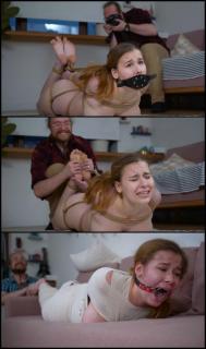 Rolling Patty onto her stomach, the captor turns to Patty’s bound feet and starts to tickle them. Patty laughs and struggles but the captor does not stop until she’s completely exhausted.