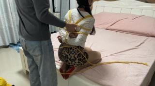 豹纹高跟美女,极限紧缚驷马,蒙眼 口球,装袋挣扎。