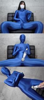 小姐姐穿着蓝色zentai,被工作组用小棒戳比,再发骚自摸,最后用快乐棒自嗨进行强高play。