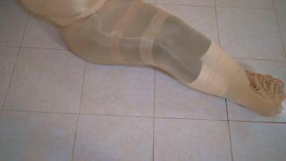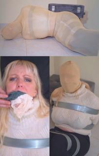 The Janitor is now unable to control his desire to see Victoria fully encased from head to toe in the nylon stocking and makes his move, he removes the sock from her head and gets behind her making it easier to slide the stocking down over her body once she is fully encased he again sits behind her and tells her she is now his and no one will ever find her while he slides his hands all over her perfect breasts. Victoria knows there is nothing she can do now.