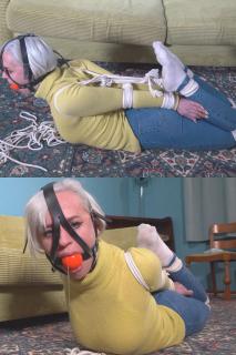 桑迪喜欢重口味的捆绑,所以她选择了最重的。一个巨大的口塞,加上极其严酷的猪蹄式捆绑。当然,她还穿着羊绒衫、牛仔裤和白袜子。Sandy does love tough bondage. So she goes for the toughest. A huge harness ballgag and extreme hogtie combe. Of course in a cashmere sweater and jeans and white socks.