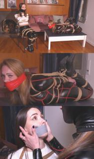 阿黛尔是世界最著名剧院之一的首席芭蕾舞演员,正值事业巅峰,被选中担任著名芭蕾舞剧《纳多尔湖》的主演和首席芭蕾舞演员。首演就在当晚举行,阿黛尔在家中焦急地等待着。然而,几个小时前,一个身着性感皮衣、戴着面具的女窃贼闯入了她的公寓。阿黛尔猝不及防,被这个性感女窃贼制服。她惊恐万分,恳求窃贼放了她,因为她是著名的芭蕾舞演员,今晚是歌剧院的首演。冷酷无情的窃贼用胶带封住了她的嘴,阿黛尔只能拼命挣扎,而窃贼已经在阿黛尔家中待了一段时间,开始搜寻值钱的东西。由于阿黛尔富有且名声显赫,这并非难事。然而,当窃贼返回时,在阿黛尔徒劳地挣扎求生无果后,她决定将阿黛尔绑在椅子上,并摘下面具,向这位被捆绑堵嘴的著名芭蕾舞演员暴露了自己的身份。阿黛尔痛苦地呻吟着,这个性感的窃贼不是别人,正是阿尔芭那位面露凶相的窃贼。阿尔芭在对手面前露出邪恶的冷笑,没错,因为她被剥夺了芭蕾舞剧的主角,现在她要报复阿黛尔,如果她不能成为纳多尔湖的主角,那么阿黛尔也休想。阿尔芭将可怜的阿黛尔绑在椅子上,堵住了她的嘴,自己则得意洋洋地享受着阿黛尔的失败,而她自己将会取代这位可爱的棕发女郎的位置;但突然,公寓的门铃响了,阿黛尔拼命地呻吟着,试图发出声音引起门口的人的注意;你听到门开了,是芭蕾舞团的导演托尼,他担心阿黛尔迟迟未到,便到她家找她。托尼被眼前的景象惊呆了,这位甜美的棕发女郎被绑了起来,羞愧地呻吟着,既愤怒又绝望。托尼立刻解开了她嘴里的布条,阿黛尔开始讲述事情的经过;托尼简直不敢相信自己的耳朵,但突然灵光一闪,他决定实施一个计划,一个邪恶的计划;他用海绵和皮围巾再次紧紧地堵住了可怜的阿黛尔的嘴,让她在椅子上扭动挣扎,而他则去房子的另一边寻找阿尔芭。Adele is the lead ballerina of one of the most famous theaters in the world; she is at the peak of her career and has been chosen as the star and principal ballerina of the famous ballet The Lake of nador. The premiere will take place that very evening, and so Adele is preparing at her home while waiting for it. However, hours earlier, a sexy masked thief, dressed in a fantastic leather catsuit, breaks into her apartment; when Adele least expects it, she is immobilized by the sexy thief. Adele is surprised and frightened and asks the thief to take whatever she wants but to let her go because she is the famous ballerina and tonight is the premiere of the grand ballet at the opera house. The heartless thief gags her with pieces of tape, leaving Adele frustrated, struggling furiously while the thief, who has been in Adele's home for some time, goes to check for valuable items, and since Adele is rich and famous, this will not be difficult. However, when the thief returns, after Adele's futile attempts to free herself, she decides to tie Adele to a chair and above all taking off the mask and reveals her identity to the bound and gagged famous ballerina. Adele moans furiously, the sexy thief is none other than Alba's grimacing one. Alba sneers wickedly in front of her rival, yes, because she has been discarded from the main role of the ballet, now she takes her revenge on Adele, and if she cannot be the protagonist of the Lake of the Nador, then neither will Adele. Alba leaves the sweet Adele bound and gagged on the chair while she triumphantly enjoys Adele's failure and it will be she who will take the place of the cute brunette; but suddenly the apartment doorbell rings, Adele moans desperately trying to make noise to attract the attention of the one at the door; you hear the door open, it is Tony the director of the ballet who, worried about Adele's delay, has come to look for her at home. Tony is shocked by the scene, the sweet brunette tied up and embarred moans furious and desperate, Tony immediately removes her gag, and Adele begins to tell what happened; Tony can't believe his ears but then, struck by an epiphany, he decides to implement a plan, a diabolical plan; with a sponge and leather scarves he tightly gags again poor Adele, leaving her still to wriggle in her chair, while he goes to look for Alba on the other side of the house.