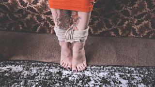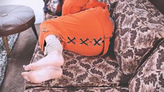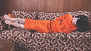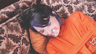 地狱猫娜特想试试束缚衣。所以,我们确保她体验了一把完整的束缚。脚踝被绑住,腿部也被束缚带固定住。为了保险起见,还用胶带封住了她的嘴。她根本无法逃脱。Hellcat Nat wanted to try a straitjacket out. So, we made sure she got the full experience. Ankles tied, and leg binder added. Tape gag for good measure. She couldn't escape