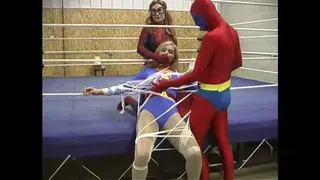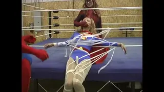 邪恶的伽玛人重返斯潘德城,这次他从斯潘德城的生物实验室偷走了一根实验性的能量棒,企图打造他的终极武器。然而,正当邪恶的伽玛人得意洋洋地庆祝胜利时,他却浑然不知蜘蛛女侠已经潜入了他的藏身之处,试图破坏他的阴谋!原子女侠!我们的女英雄悄悄潜入体育馆,不知即将发生什么,突然发现蜘蛛女侠被一条橡胶胶带无助地捆绑着。原子女侠冲上前去营救她的同伴,却意外地与伽玛人正面交锋。她与这个恶棍展开搏斗,最终制服了他。她继续帮助被捆绑的蜘蛛女侠站了起来。恶棍再次逼近,就在这时,蜘蛛女侠突然抓住了原子女侠。她惊愕地发现,蜘蛛女侠竟然中了伽玛人的精神控制毒气,现在正帮助他制服这个性感的攻击者!原子女侠奋力反抗,却被蜘蛛女侠的粘性蛛网击退。她醒来后发现自己无助地被粘稠的蛛网困住,紧贴着健身房的绳索。她拼命挣扎,却无法逃脱这粘稠的陷阱。伽玛人闪烁着光芒,命令他的蜘蛛女奴用他的声波振动器吸取她的DNA。他开始刺激这位性感的女英雄,而他的奴隶蜘蛛女侠则从后面捂住她的嘴,不让她发出尖叫。原子女侠扭动挣扎,试图挣脱束缚,却很快发现自己被脉动的装置刺激得快要崩溃!她很快便在一声高潮的呻吟中高潮精疲力竭,身体被束缚着,等待着被制成木乃伊。