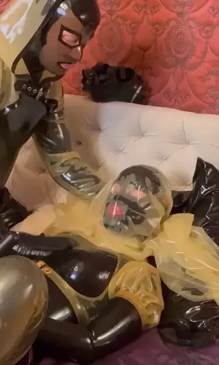 Black latex catsuit/Black Rubber/Breath control/Breathplay/Corset/Gasmask/Hotel Rubberdoll/Sex with the Dom
