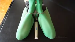 Down to Brass Tacks - Elise Graves - Strict Handcuff Hogtie, Hair Tie Tied to Toes, and Tacks on Her Breasts Prevent Elise from Relaxing Her Back!Dressed in only a pair of bright green pantyhose, some rubber mitts, and a vibrator belt, Elise Graves is secured into a strict handcuff hogtie. The metal digging into her wrists and ankles is painful, and yet her hair tied in a strict fashion to her toes does nothing but make it worse. Elise needs to maintain an exhausting back arch in order to reduce the pressure of the handcuffs from digging in. As if this was not enough, a mystery person adds some microfoam tape decorated with a handful of sharp thumb tacks to Elise’s breasts, surrounding her nipples. This means that if Elise rests her strict back arch for even a moment, her nipples are poked with the tacks. Avoiding the tacks, handcuffs and hair tie is exhausting, however when the vibrator strapped to her pussy is powered on, Elise has yet one more thing to think about!