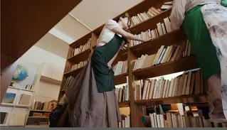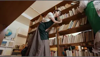 図書館にいる地味OLにスカート内手マンでレズ堕ちするまで何度もイかせる制服ビアン