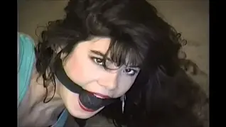 Bimbo, leather strapped, bondage rope, harness gag, ballgag, struggling, moaning,underwear, high heels,gloves, gitana