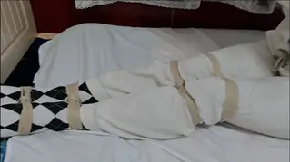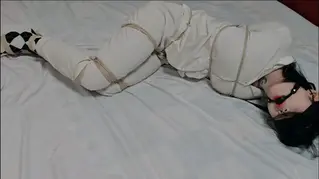 貌似是第三次穿睡衣被绑,所以加了一个3.0hh,这次绑的是直臂,虽然不算很极限但是比起其他的绑法来还是难受很多,其实我还算是比较有舞蹈功底,但是时间长了还是会发麻受不了,然后是穿了一双很可爱的棱形格子棉袜,并腿缚,大腿,膝盖上下,脚踝还有脚掌都绑在一起,蒙着眼带口球。虽然被绑的很难受但是如果选的话还是口球会更羞耻,跟其他不一样的是会忍不住流口水出来,因为蒙着眼又会担心弄的到处都是所以全程都会很紧张...最后摘掉眼罩后确实把睡衣和床单都弄脏了...