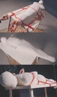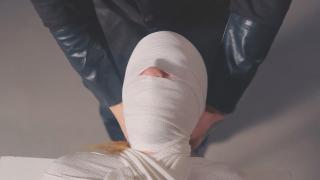 想象一下,安被完全裹成木乃伊状,身体最敏感的部位被挠痒,那种感觉该有多么强烈!她在事后接受采访时描述了自己的感受。Ann is being trictly and very tightly mummified. Beneath the bandages, her hands are tightly bound with rope behind her back, and her legs are together. Her entire body is restrained, and she can barely move, completely helpless in our hands.