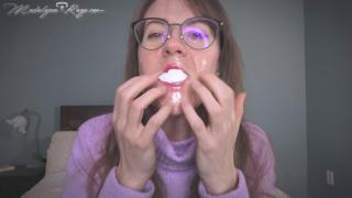 She demonstrates each one being packed into her cheeks and mouth, and the Tegaderm being secured over it. You get to see her red lipsclearly through the gag, the gag stuffing move as she tries to push it out and she demonstrates a variety of talking and DID expressions and banter while gagged.
