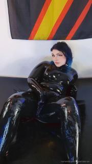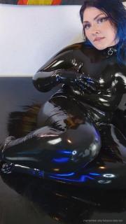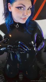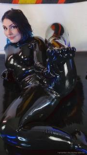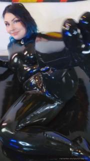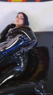 Here is a video for everyone who likes cute little rubber feet. I rub my feet and hold myself in my shiny wet catsuit.