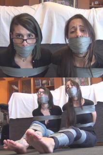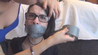 更多新女孩加入Spanish Ties!欢迎Gatith!这是Gatith第一次被捆绑堵嘴!Liricaa、Yukiko和Gatith是朋友。Liricaa和Yukiko受够了Gatith总是偷她们的衣服,所以她们想给她点教训。她们叫来Gatith,Yukiko立刻抓住她,用手捂住她的嘴,Liricaa开始捆绑她。她们用了好多胶带!她们用Gatith自己的袜子塞住她的嘴,然后用胶带封住她的嘴。Gatith被捆绑堵嘴后,Liricaa抓住Yukiko,开始捆绑她。“你在干什么?”“我知道你穿着我的内裤!”Liricaa知道Yukiko一直在偷她的内裤,所以她也要给她点教训。她用胶带绑住Yukiko,用袜子塞住她的嘴,封住她的嘴!现在两个女孩都被捆绑堵嘴了。莉莉卡很享受看到她们无助的样子。她把她们留在那里,两个女孩被绑着,嘴也被堵住了。More new girls coming to Spanish Ties! Wellcome Gatith! This is the first time Gatith gets tied up and gagged!! Liricaa, Yukiko and Gatith are friends. Liricaa and Yukiko are tired of Gatith always stealing their clothes, so they want to teach her a lesson. They call her, and immediately Yukiko grabs and handgags her and Liricaa starts to tie her up. They use a lot of tape! They stuff Gatith's mouth with her own socks and then gag her with tape. Once Gatith is all tied up and gagged, Liricaa grabs Yukiko and starts to tie her up. "What are you doing?" "I know you're wearing my panties!". Liricaa knows that Yukiko has been stealing her panties, so she's gonna teach her a lesson too. She ties her with tape and gags her stuffing her mouth with socks! Now the two girls are tied up and gagged. Liricaa enjoys seeing them all helpless. She leaves them there, and the two girls are left tied up and gagged