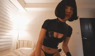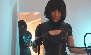 女王身着开胸包臀旗袍裙,四肢穿上乳胶手套和长筒乳胶袜,戴上硅胶泰勒面具,下面塞入多点位刺激跳蛋,拿起皮鞭准备调教在衣物间的硅胶娃娃。女王进入衣帽间后抚摸舔舐扶他娃娃的双峰,之后掏出娃娃的神秘物品用嘴疯狂出入。前戏欢愉后,女王摆出正常位姿势展开双腿命令娃娃进入。一阵满足后在床上女上位姿势疯狂骑乘硅胶娃娃,同时用玉足乳胶脚玩弄娃娃的巨乳,在起伏中一起到达高潮......Taylor Mask紧紧的附着在脸上,贴身的乳胶衣也令人兴不已。一边端详着镜中陌生的脸蛋,一边想着该用这副陌生人的脸孔做些什么事才好呢?和平时截然不同的自己,好像重生一般。看着坐在那儿不知多久的着ぐるみ娃娃,嘴角忍不住上扬,看来今晚得好好〇〇一番了.…..♡