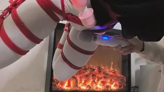 被吊起来的杂鱼群主根本无力反抗,只能左右摇摇晃晃做一些弱小的挣扎,在群友们高强的震动棒攻势下只能无助的发出一阵阵动人心弦的娇喘的声音,任由群友们玩弄~