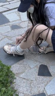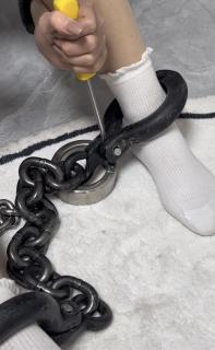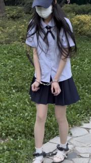 妹子在家里体验了几副别的脚镣和粗大的铆钉死镣,然后跑到户外去又戴了一阵子,在公园里自己砸上死镣。JK制服和lo鞋