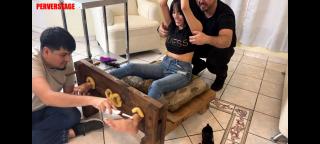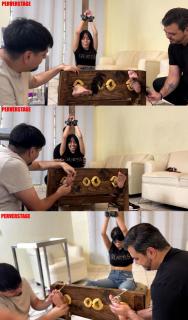 Now Priscilla will try to be tied in the stock, her feet are even more defenseless, between her husband and another tickler they will have fun trying to get a laugh out of Priscilla, which for her seems like something quite funny.