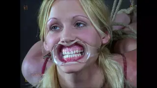 Extreme bondage, insex, chairtied, breathplay, stockings, sexy underwear, nose torture, nose hook, rope bondage, spread bar, spider gag, ballgag, dental gag, rubber hood, plastic hood,leather posture collar, slapped, tears, cute blonde, talking, hard session, maledom, harness inflatable gag, drooling