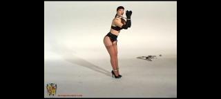 Check out our model Page Richards and see how closely she resembles Betty Page, the famous 1950s bondage pinup model. In this feature Gord and Page demonstrate how elegant this rigid metal bondage gear looks with lingerie, heels and opera-length gloves.