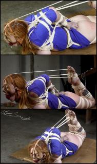 This clip starts where Part 3 ended. Lauren is left on the floor to endure her hogtie. She really can't move much at all... some mmpphss and drooling is all she can do. I get bored of her like this after some time, so I roll her onto her side and get a more intense reaction when I start slapping her bound tits, and I love the wide eyed expression she gives while ths is happening. I step away and let Lauren fill the screen for a while as she again settles into her bondage and concentrates on breathing. I understand that breathing is important, but I want more reactions out of Lauren, so I attempt to clamp her nipples again, but once again, between her small nipples and bound tits, they just keep sliding off. I did get a lovely reaction from Lauren as she yelped and twitched. Since clamps won't stay on, I slap and grab her tits for a bit before stepping away and leaving Lauren on her own once again. At the end of the clip I tell Lauren I'll free her if she begs nicely. It's really hard to tell what she is saying with the ballgag harness strapped on so tightly, but I assume she is begging nicely and I free her. See Lauren's reactions as she is let out of her bondage and gag. Yes, she giggles when the ropes are cut off as well.