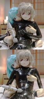 娃娃先穿一层胶衣,进行手撸刺激。再穿第二层胶衣,用快乐棒强高折磨,同时享受两层胶衣全包头套窒熄带来的块感。
