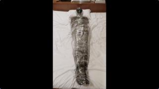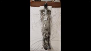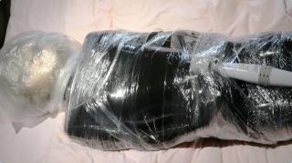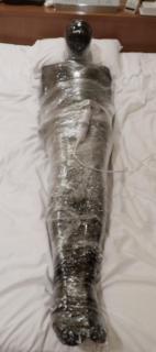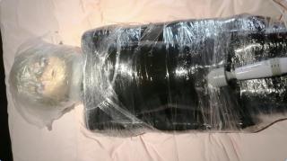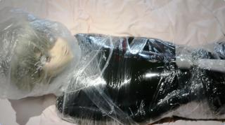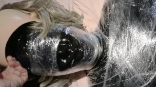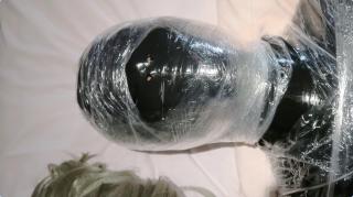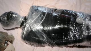 全包胶衣 + 微孔乳胶头套 + 保鲜膜木乃伊包裹 + 快乐棒强高 + 窒熄