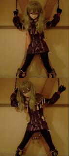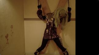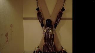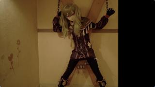 刑架上的娃娃在享受快乐棒强高,同时kig里面还穿了胶衣,头壳里面是全包乳胶头套。