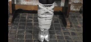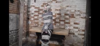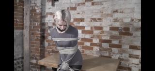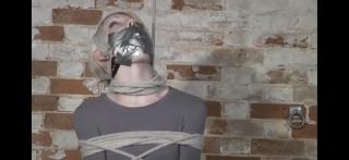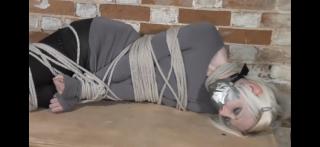 金发妹子全身捆满了绳子,嘴巴也被胶带封住~