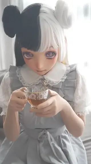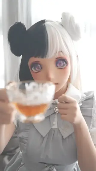 The girl was wearing a full-body zentai, and a head covering that fully enclosed her head in black and white hair. She was dressed in a lace-trimmed short-sleeved dress and knee-high white stockings, and was on a date with the photographer. On the way, the photographer looked at the girl's round and plump buttocks and prepared to have intercourse with her in a normal position. He took off his panties, waited for the girl's rubber doll vagina to become wet with her own fluids, and then used a black, oversized latex mysterious object to frantically thrust into her vagina. As the girl gasped repeatedly, the photographer couldn't hold back either, and they both immersed themselves in the joy of climax... During a break, the photographer drank the girl's black tea, but unexpectedly, he was tricked by the girl and fainted. When he woke up, he found himself tied to the bed by the little devil-like girl in front of him, being forced to ejaculate. The girl took out lubricant and dripped it onto a crystal-clear stick and the photographer's mysterious object, satisfying herself while frantically forcing him to ejaculate ..