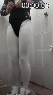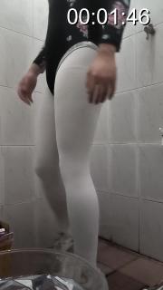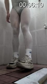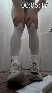 今天主人发微信让我去到厕所,穿上两层白裤袜和一双中筒袜,还有两件体操服,接着穿上鞋,里面还塞着一个拉珠肛塞。喝完一定量的水后主人让我一直做深蹲,然后主人让我拿出肛塞罚站,到最后小狗憋不住了,只好尿在体操服和白裤袜里,鞋里面全是小狗的尿液,最后是失禁特写。