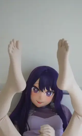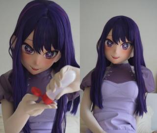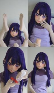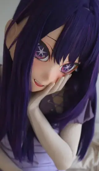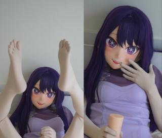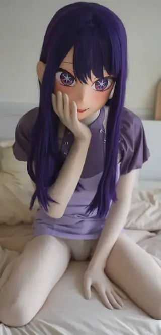The doll is dressed in a full-body tight-fitting clothes and a kig headpiece of Ai Hoshino, with a purple lace-sleeved short skirt worn over. After the shooting, Ai-chan is resting, unaware of the huge secret hidden under the skirt. Ai-chan sits on the bed like a duck with M-legs and pulls out a mysterious object from her underwear. She first uses a cup to frantically pump her stick, and after a burst of stimulation, milk spurts out accompanied by delicate breaths... The transvestite little girl rubber doll, who is still not satisfied, continues to play with her stick to release her latex doll erotic desires, and this time, milk splashes... spraying all over the skirt ..
