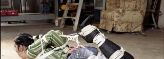 This Clip starts where Part 4 ended... Raven is left to endure her hogtie, I ask if she is concentrating on just breathing, which she is. Not much struggling going on at this point, although we like to see it sometimes, we all know it is futile. After a while, I want a new view, so I roll Raven onto her side, because she sure can't do it herself. She is t I step away once again and let Raven endure her bondage, nose hookhere for quite some time. I finally get a reaction out of her I remove them a short while later and once again Raven lets out a loud groan. I manhandle her again and slap her nice jean clad ass a few more times before I free her. I remove the sponge from her mouth and she talks a little about her ordeal as I continue removing her ropes.