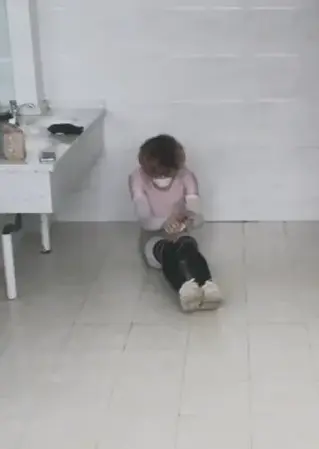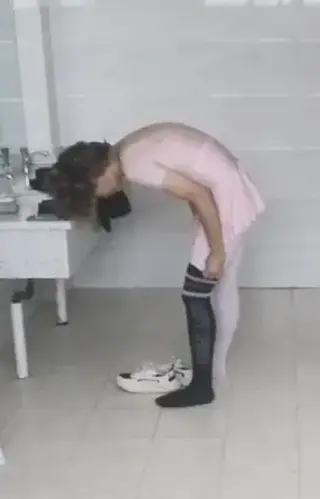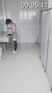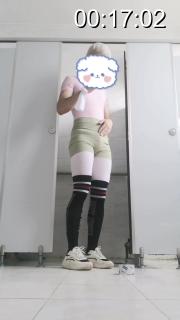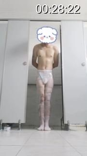 内容:这次主人要求小狗来到学校里的一个公共厕所,穿好衣服后,要求小狗喝下一大瓶水。之后要求小狗用自己的袜子塞嘴,用肉丝蒙住头,将一只脚吊在栏杆上放置。最后要求小狗脱光衣服只留下一双白裤袜,双腿用胶布固定好,然后双手吊在栏杆上放置。