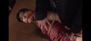 妹子身着旗袍被捆绑,嘴吧被布条勒住,一名男子对她上下其手~