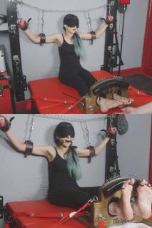 In this clip Jezebel has already been unsuccessfully interrogated so she is handed off to a much more ruthless officer who knows of Jezebel's resilience and decides to ballgag her for parts of the interrogation to inflict pure punishment without her being about to give up the information and make it stop, even if she wanted to. All manners of tools are used in this clip, multiple hairbrushes, electric flossers, feather and pet grooming gloves. Jezebel is blindfold, gagged, stocked, toetied and securely restrained for well over 20 minutes of intense feet tickling.