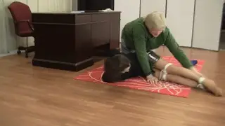 【中文off】OL肉丝秘书被老板捆绑挠痒。Belle has a bit of a fetish for bondage but a problem with fulfilling it. No one is willing to tie her up! She uses some bad reviews that Mr Andrews has racked up to get him to bind and gag her. She hands him some rope and tells him that she wants some bondage with a bit of tickling tossed in. Standing her up her wrists are bound first with the rope she's provided. She's then ballgagged and placed on the floor where her high heeled feet are bound together. Another rope finds itself on her knees binding them tightly together before David moves up and tops off her bondage with a nice tight elbow rope. With her completely bound David starts moving her around on the floor and tickling her without mercy. He figures if he's going to be made to do this he might as well do it very well. Eventually her shoes get removed which causes David to gravitate to her soles and alternating back and forth between those and her midsection.
