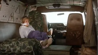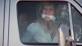A beautiful and inquisitive journalist is tied up and gagged in a van because of her curiosity.